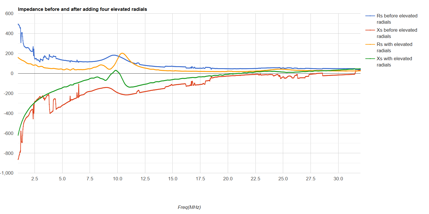 ![]() Impedance sweeps before and after adding elevated radials |